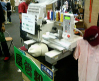 このマシーンはCapに刺繍出来るマシーンです!どんなものが出来るのかブースの人に聞いてみました。Kuniemonオリジナルのロゴ刺繍出来るかなーとか値段はどのくらいで出来るのかとか。。。ブースの人もすごく親切な人で色々な話ができました。そのうちKuniemonCapが登場するかもしれないです! |